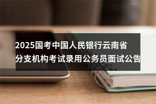 原标题:中国人民银行云南省分支机构2025年度考试录用公务员面试公告
