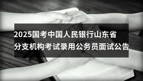 声明:专注 2025国考中国人民银行山东省分支机构考试录用公务员面试公告 相关岗位分析;专业指导面试技巧;保障就业成功概率。