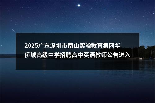 原标题:南山实验教育集团华侨城高级中学面向全国招聘高中英语教师公告