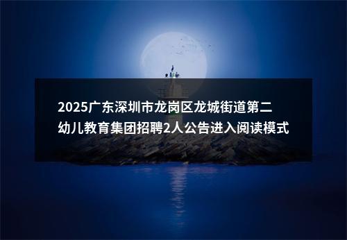 【2025广东深圳市龙岗区龙城街道第二幼儿教育集团招聘2人公告进入阅读模式】相关岗位: