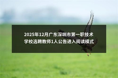 原标题:深圳市第一职技术学校2025年12月公开选聘教师公告