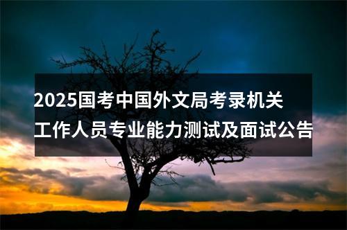 原标题:中国外文局2025年度考录机关工作人员专业能力测试及面试公告