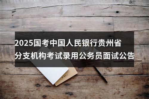 原标题:中国人民银行贵州省分支机构2025年度考试录用公务员面试公告