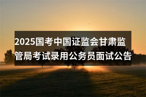 根据公务员录用工作有关规定,按照中国证监会的统一部署,2025年度中国证监会甘肃监管局公务员招录面试定于2025年3月1日(周六)进行,现就有关事宜公告如下: