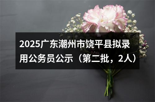 声明:专注 2025广东潮州市饶平县拟录用公务员公示(第二批,2人) 相关岗位分析;专业指导面试技巧;保障就业成功概率。