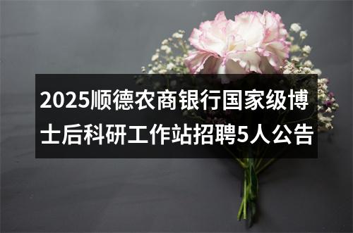 【2025顺德农商银行国家级博士后科研工作站招聘5人公告】相关岗位: