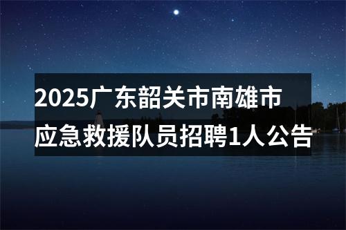 【2025广东韶关市南雄市应急救援队员招聘1人公告】相关岗位:
